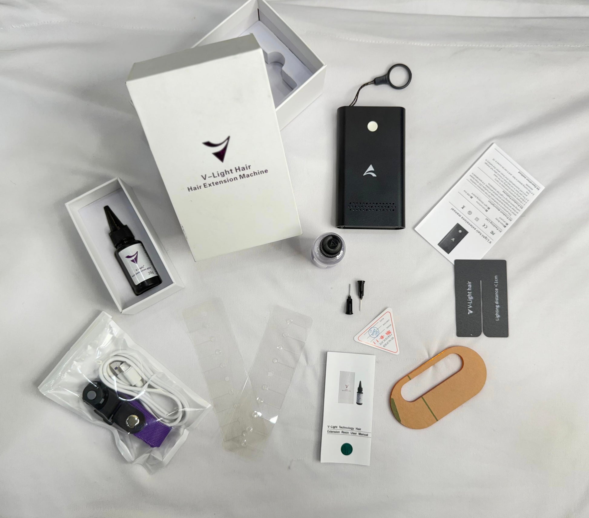 Our V-Light Hair Extension Machine Kit is designed to make applying and removing hair extensions easier, faster, and safer. Whether you're a pro stylist or just starting out, this all-in-one kit gives you everything you need for flawless results without any heat or damage.